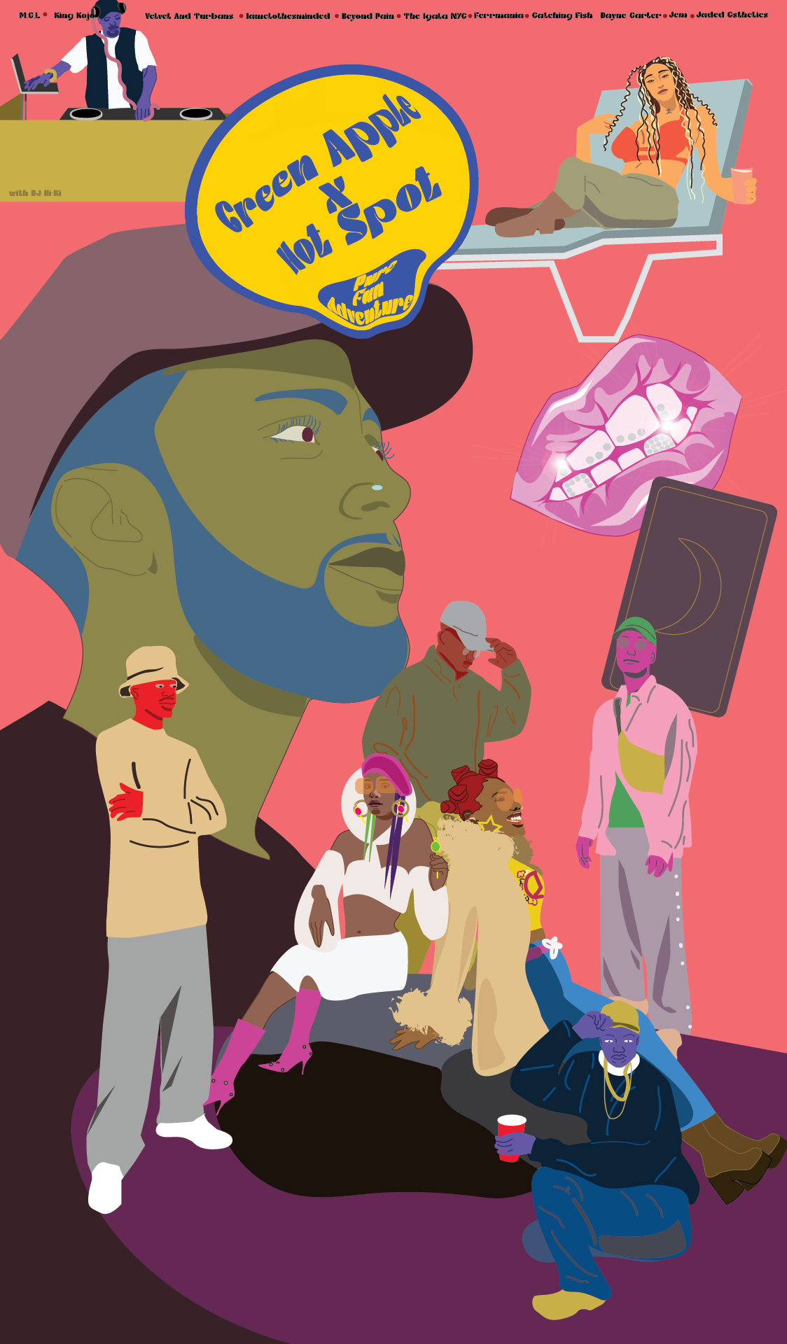 Flyer for Green Apple x Hot Spot Collective event "Pure Fun Adventure"